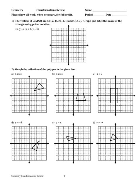 Transformation Review Worksheet Answer Key
